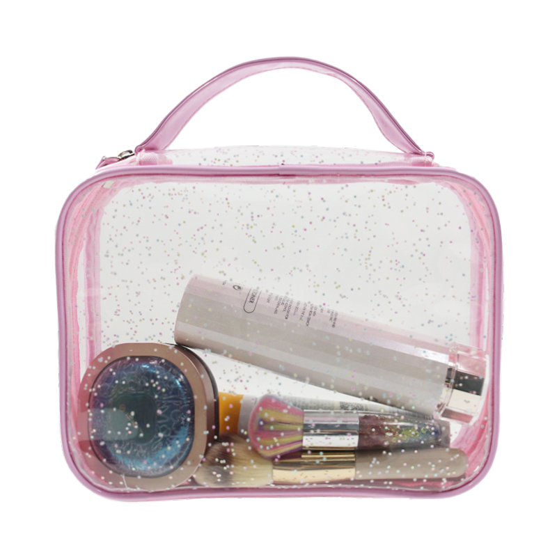 Q&N Clear Makeup Bag Glitter PVC Cosmetic Case Travel Organizer