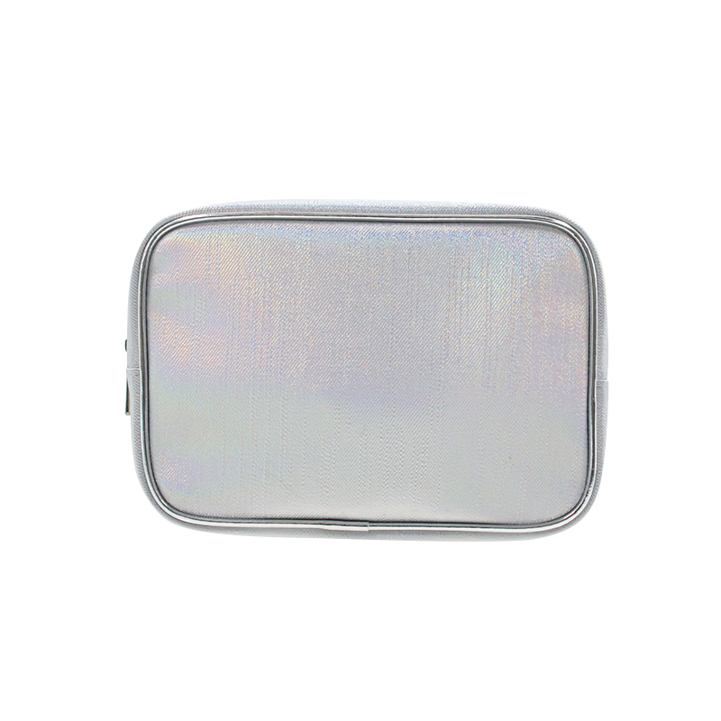 Q&N Holographic Makeup Bag Silver PU Cosmetic Pouch Travel Organizer