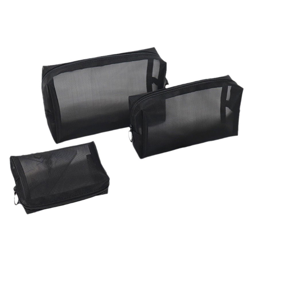 Q&N Mesh Makeup Bag Set Black Zipper Pouch Travel Organizer