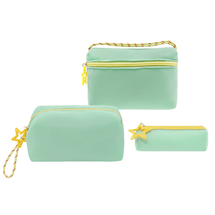 Q&N Mint Green Mesh Makeup Bag Set with Star Zipper Pulls
